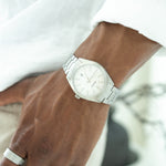 10 ATM Wasserdichtigkeit, kratzfestes Saphirglas und präzise Handarbeit machen sie zu einer Uhr, die dich ein Leben lang begleitet.