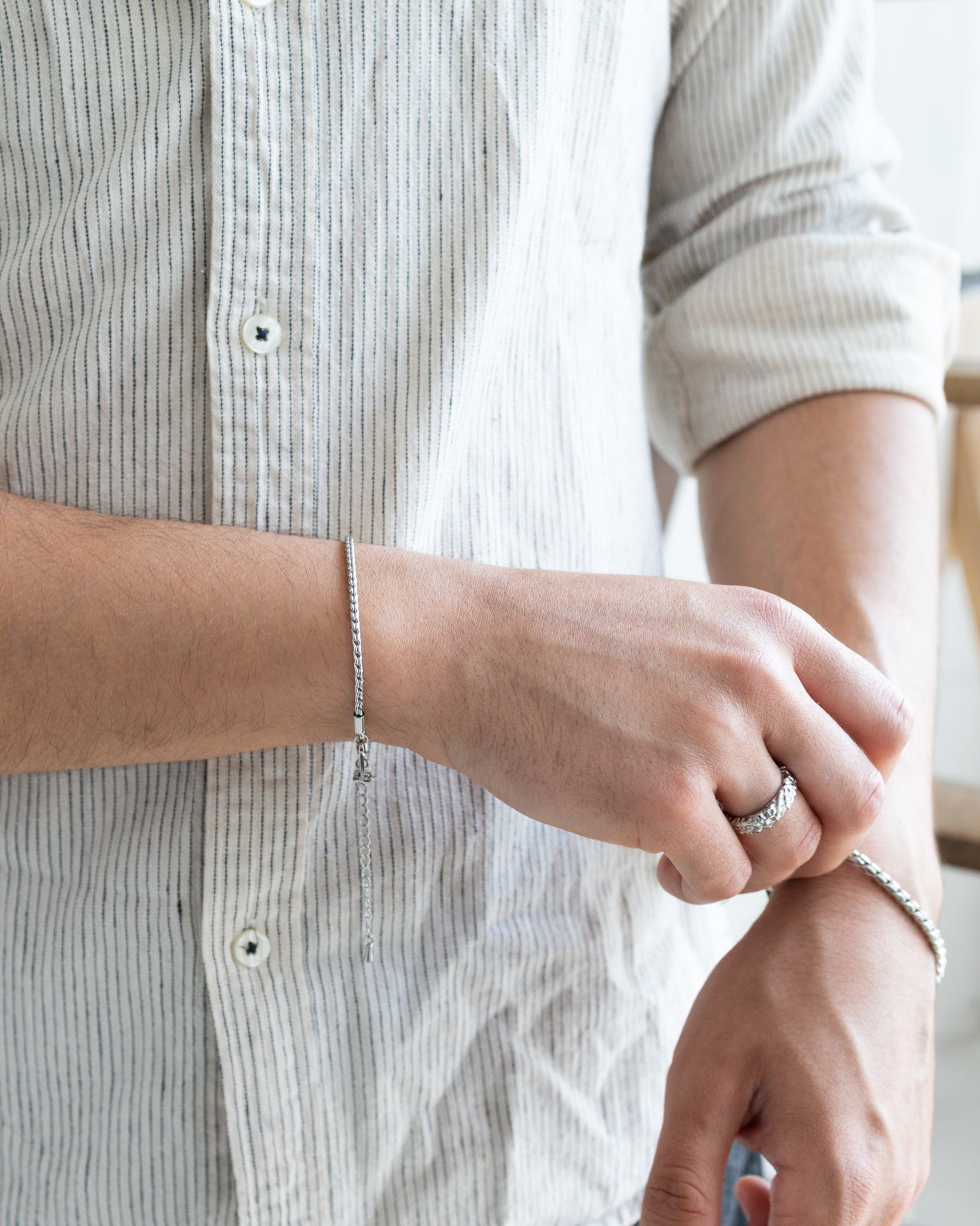 Unsere Schmuckstücke sind alle One-Size und individuell verstellbar – dazu gehören unsere Armbänder, Halsketten und Uhren.