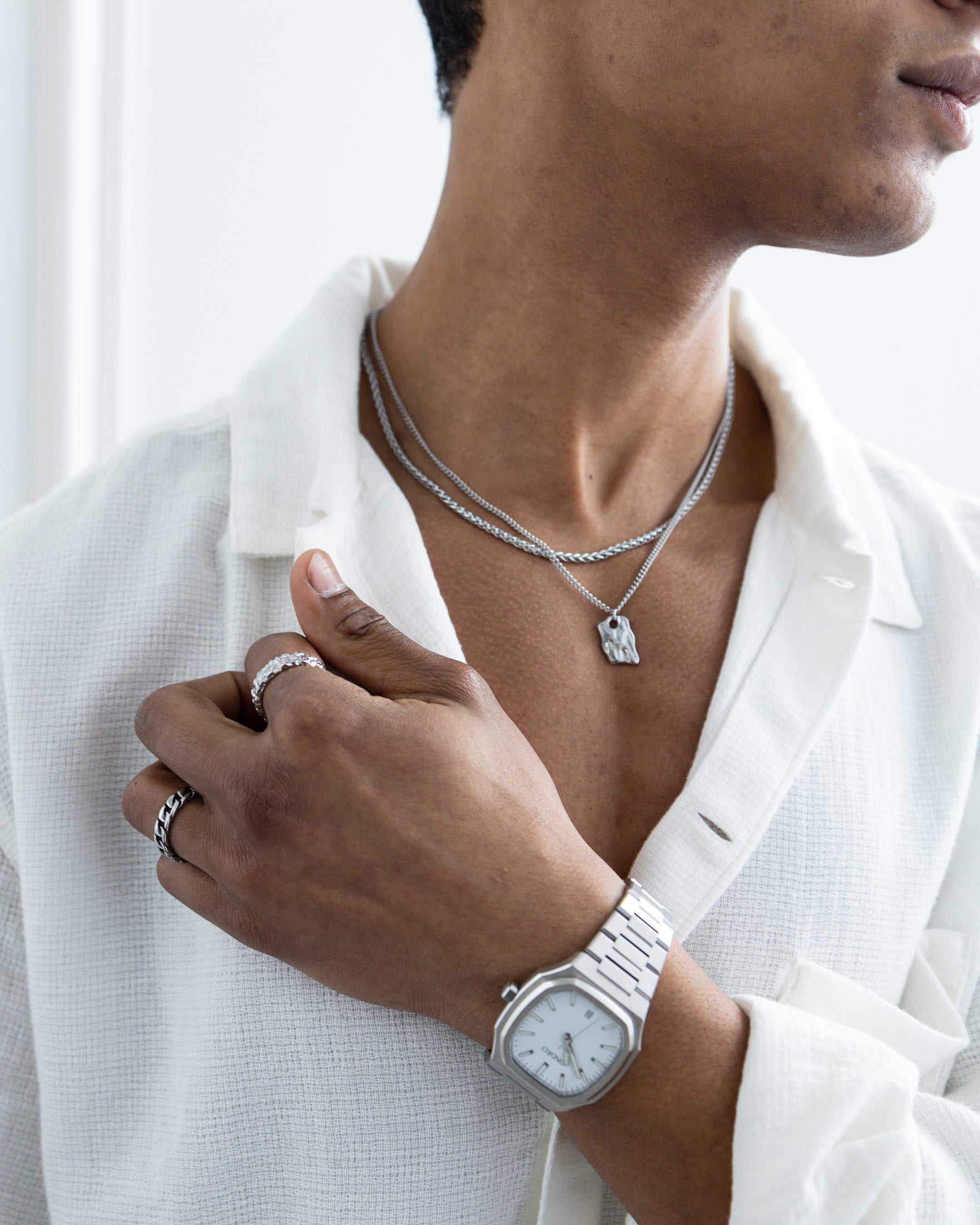 Unsere Schmuckstücke sind alle One-Size und individuell verstellbar – dazu gehören unsere Armbänder, Halsketten und Uhren.